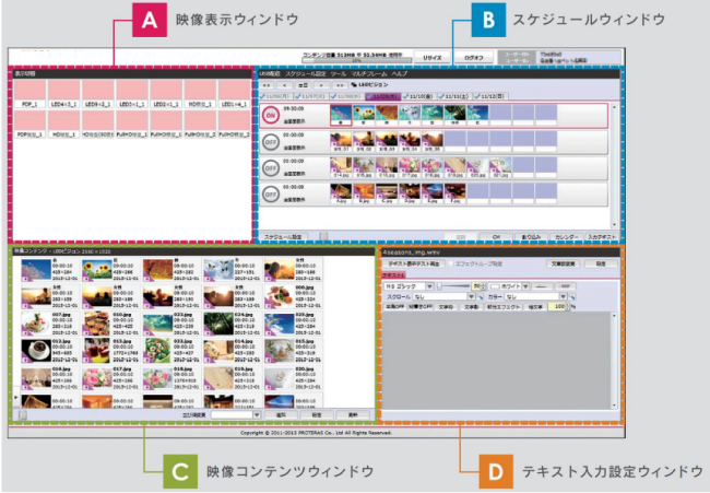WEBブラウザ内で映像へのテキスト縫う力やスケジューリングを行い、オリジナルコンテンツを配信することが可能です。